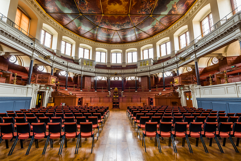 On select dates, you can explore the grand auditorium where all University ceremonies take place. Look up and take in the extraordinary painted ceiling by Robert Streater, the court painter for King Charles II. The painting depicts Truth descending onto the Arts and Sciences to expel Ignorance from the University.